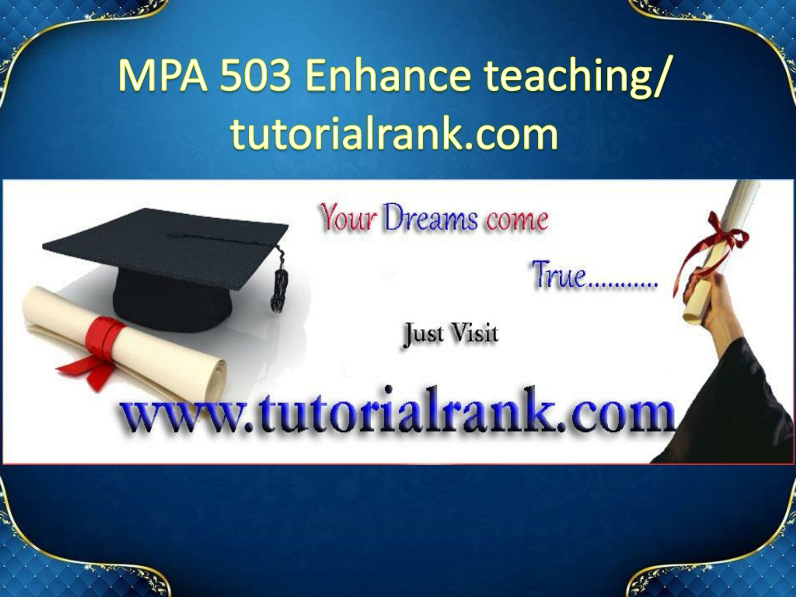 MPA 503 Enhance teaching/ tutorialrank.com MPA 503 Exploring the Possibilities Here to Buy the Tutorial For more course tutorials visit www.tutorialrank.com MPA 503 Exploring the Possibilities