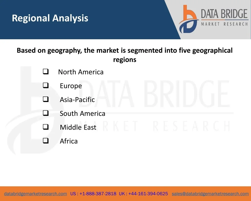 About Data Bridge Market Research An absolute way to forecast what future holds is to comprehend the trend today! Data Bridge Market Research set forth itself as an unconventional and neoteric Market research and consulting firm with unparalleled level of resilience and integrated approaches. We are determined to unearth the best market opportunities and foster efficient information for your business to thrive in the market. Data Bridge endeavors to provide appropriate solutions to the complex business challenges and initiates an effortless decision-making process. Read Continue : http://databridgemarketresearch.com/about-us/ Contact Us : SopanGedam Sopan.gedam@databridgemarketresearch.com