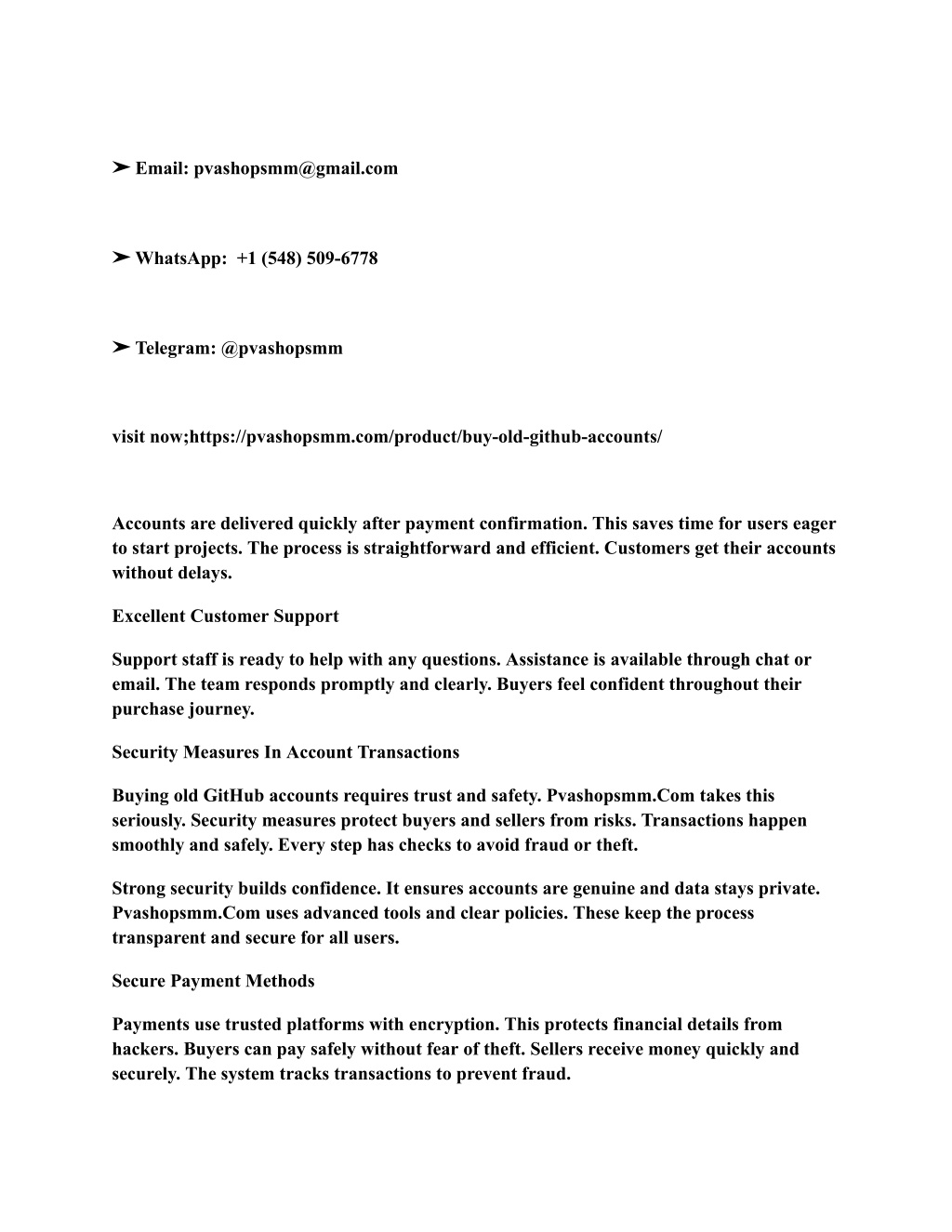 ➤ Email: pvashopsmm@gmail.com ➤ WhatsApp: +1 (548) 509-6778 ➤ Telegram: @pvashopsmm visit now;https://pvashopsmm.com/product/buy-old-github-accounts/ Accounts are delivered quickly after payment confirmation. This saves time for users eager to start projects. The process is straightforward and efficient. Customers get their accounts without delays. Excellent Customer Support Support staff is ready to help with any questions. Assistance is available through chat or email. The team responds promptly and clearly. Buyers feel confident throughout their purchase journey. Security Measures In Account Transactions Buying old GitHub accounts requires trust and safety. Pvashopsmm.Com takes this seriously. Security measures protect buyers and sellers from risks. Transactions happen smoothly and safely. Every step has checks to avoid fraud or theft. Strong security builds confidence. It ensures accounts are genuine and data stays private. Pvashopsmm.Com uses advanced tools and clear policies. These keep the process transparent and secure for all users. Secure Payment Methods Payments use trusted platforms with encryption. This protects financial details from hackers. Buyers can pay safely without fear of theft. Sellers receive money quickly and securely. The system tracks transactions to prevent fraud.
