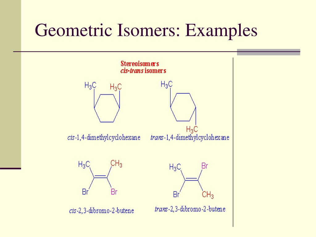 Stereoisomers • Configurational • Geometric or Diastereomers • Optical or Enantiomers • Conformational or Rotamers