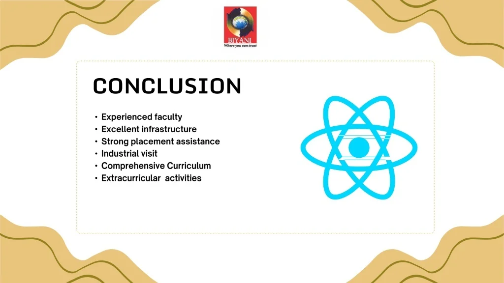 CONCLUSION • Experienced faculty • Excellent infrastructure • Strong placement assistance • Industrial visit • Comprehensive Curriculum • Extracurricular activities