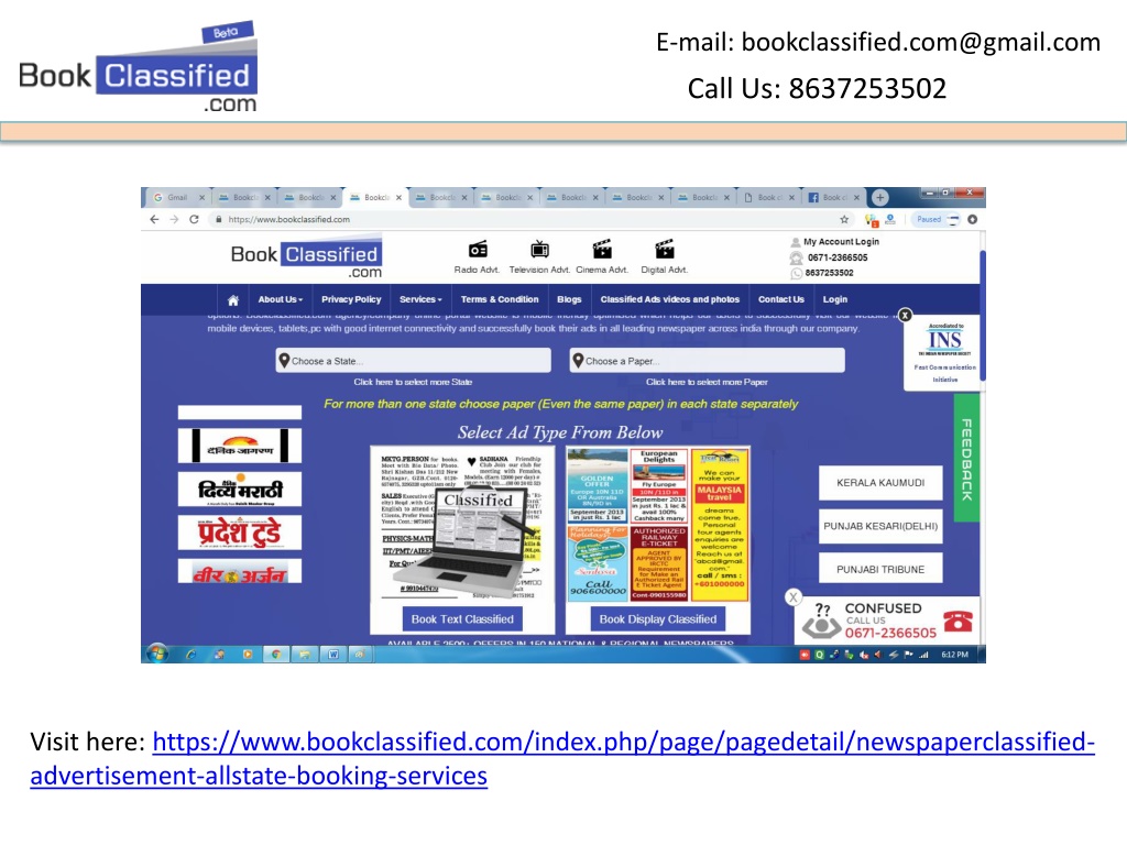 E-mail: bookclassified.com@gmail.com Call Us: 8637253502 Visit here: https://www.bookclassified.com/index.php/page/pagedetail/newspaperclassified-advertisement-allstate-booking-services