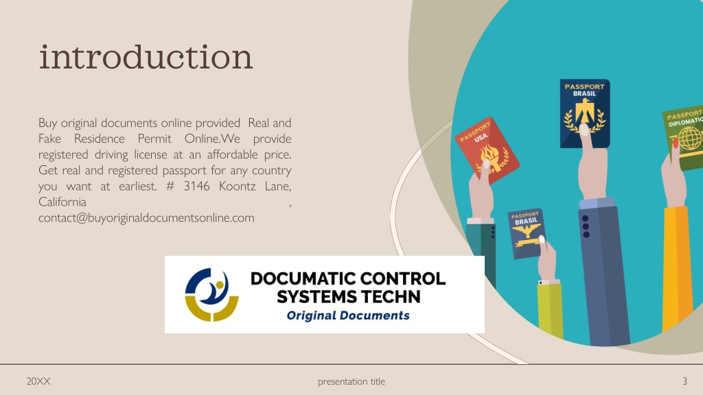introduction Buy original documents online provided Real and Fake Residence Permit Online.We provide registered driving license at an affordable price. Get real and registered passport for any country you want at earliest. # 3146 Koontz Lane, California , contact@buyoriginaldocumentsonline.com presentation title