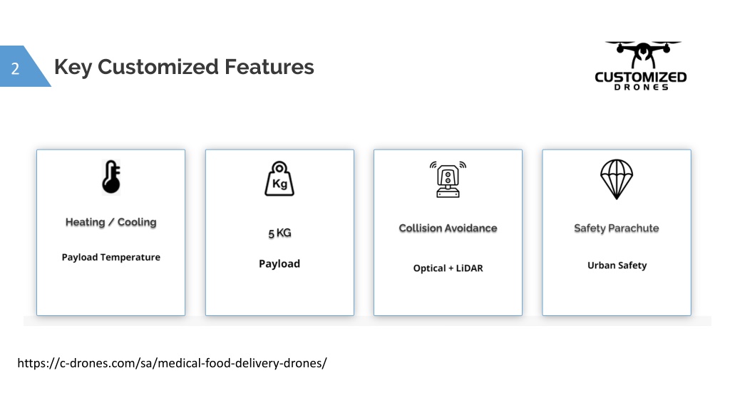 Key Customized Features 2 https://c-drones.com/sa/medical-food-delivery-drones/