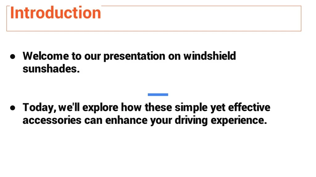 Introduction Welcome to our presentation on windshield sunshades. Today, we'll explore how these simple yet effective accessories can enhance your driving experience.