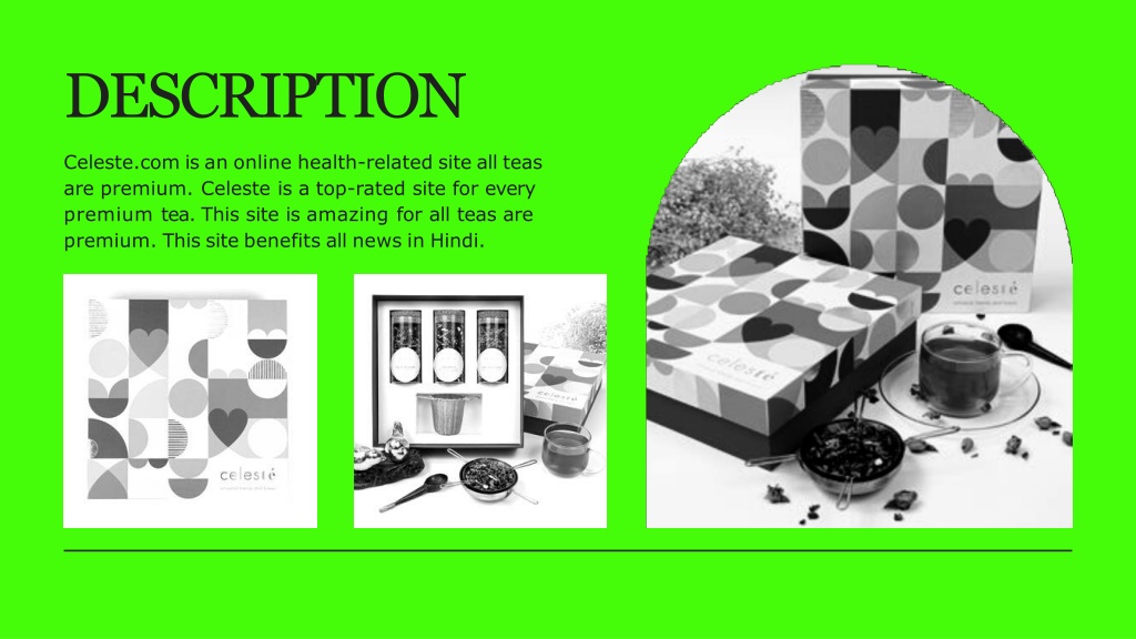 Celeste.comisanonlinehealth-relatedsiteallteas are premium. Celeste is a top-rated site for every premium tea. This site is amazing for all teas are premium.ThissitebenefitsallnewsinHindi. DESCRIPTION