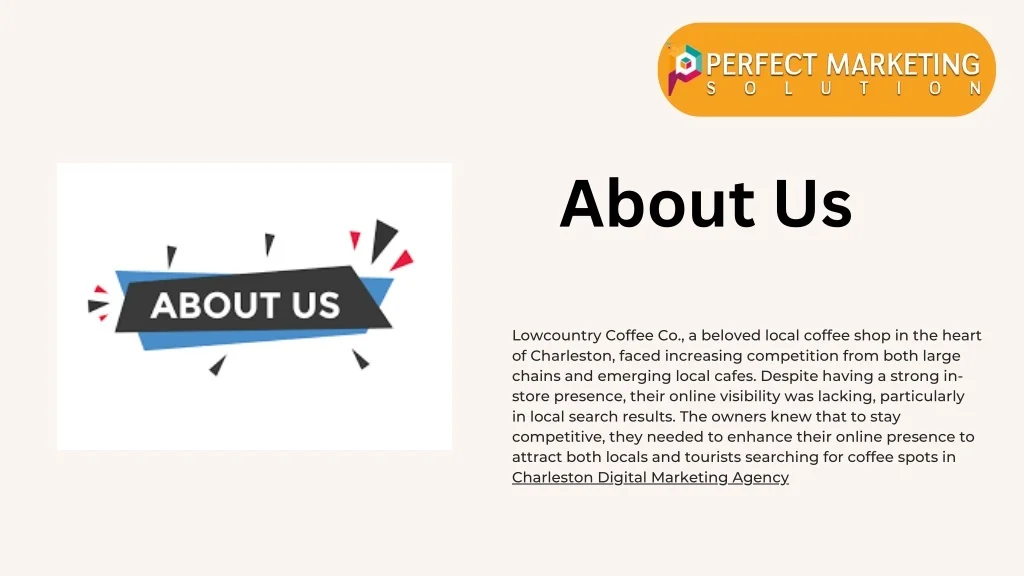 About Us Lowcountry Coffee Co., a beloved local coffee shop in the heart of Charleston, faced increasing competition from both large chains and emerging local cafes. Despite having a strong in- store presence, their online visibility was lacking, particularly in local search results. The owners knew that to stay competitive, they needed to enhance their online presence to attract both locals and tourists searching for coffee spots in Charleston Digital Marketing Agency