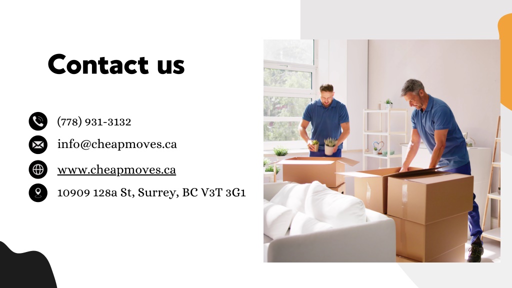 Contact us (778) 931-3132 info@cheapmoves.ca www.cheapmoves.ca 10909 128a St, Surrey, BC V3T 3G1