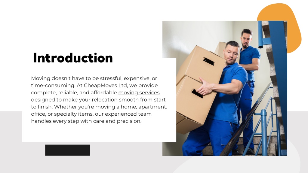 Introduction Moving doesn’t have to be stressful, expensive, or time-consuming. At CheapMoves Ltd, we provide complete, reliable, and affordable moving services designed to make your relocation smooth from start to finish. Whether you’re moving a home, apartment, office, or specialty items, our experienced team handles every step with care and precision.