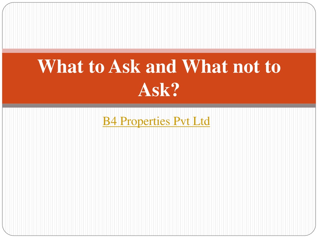 What to Ask and What not to Ask? B4 Properties Pvt Ltd