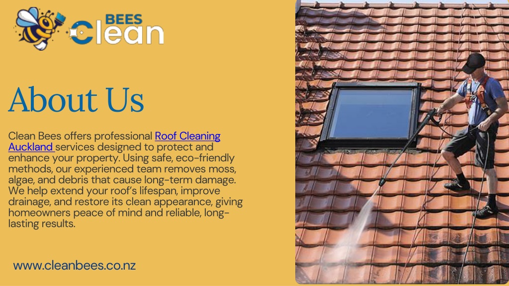 About Us • Clean Bees offers professional RoofCleaning Auckland services designed to protect and enhance your property. Using safe, eco-friendly methods, our experienced team removes moss, algae, and debris that cause long-term damage. We help extend your roof’s lifespan, improve drainage, and restore its clean appearance, giving homeowners peace of mind and reliable, long-lasting results. www.cleanbees.co.nz