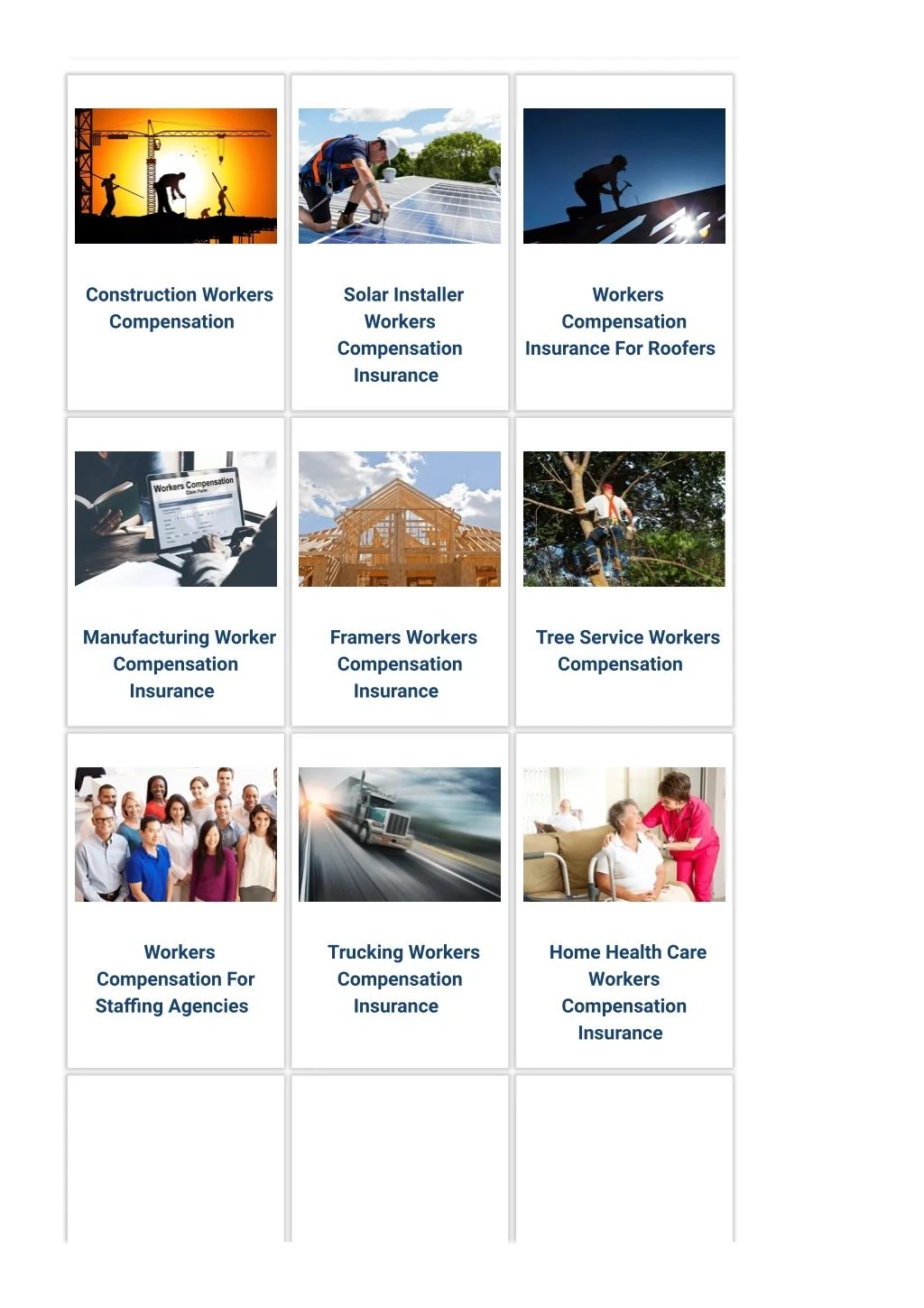 Construction Workers Compensation Solar Installer Workers Compensation Insurance Workers Compensation Insurance For Roofers Manufacturing Worker Compensation Insurance Framers Workers Compensation Insurance Tree Service Workers Compensation Workers Trucking Workers Compensation Insurance Home Health Care Workers Compensation Insurance Compensation For Sta?ng Agencies