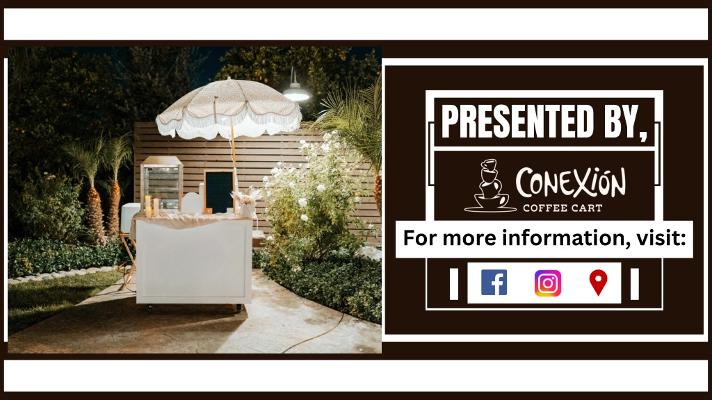 Wedding coffee cart services offer a pop-up coffee bar at your celebration, serving premium drinks while adding a trendy, guest-friendly experience to your big day. Send us an email at info@conexioncoffee.com for more details.