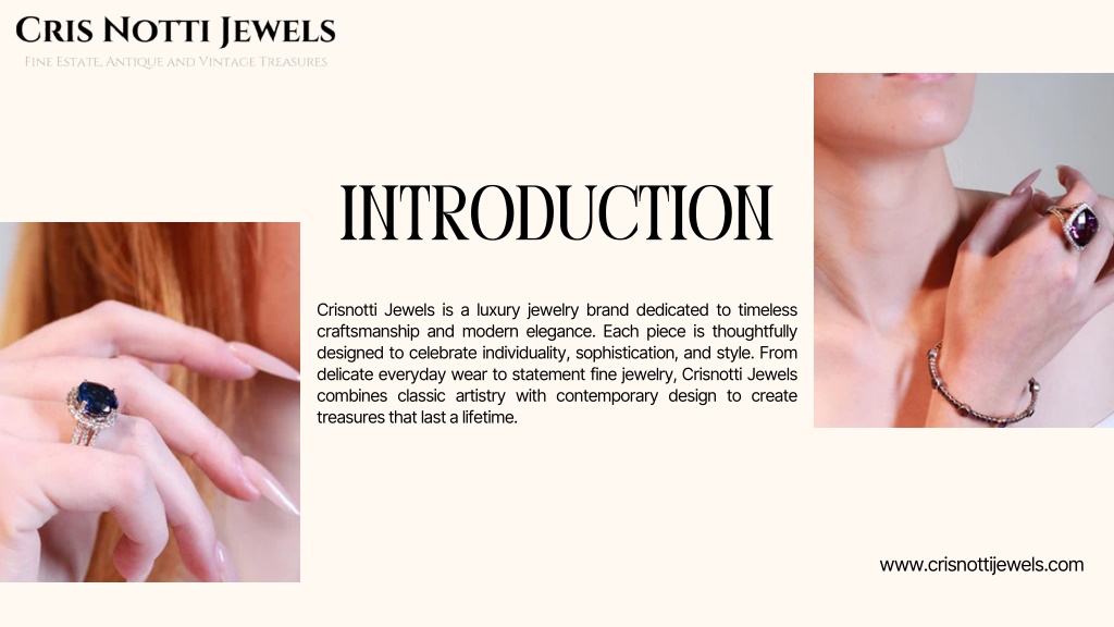 introduction Crisnotti Jewels is a luxury jewelry brand dedicated to timeless craftsmanship and modern elegance. Each piece is thoughtfully designed to celebrate individuality, sophistication, and style. From delicate everyday wear to statement fine jewelry, Crisnotti Jewels combines classic artistry with contemporary design to create treasures that last a lifetime. www.crisnottijewels.com