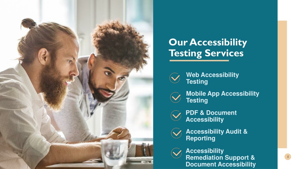 Our Accessibility Testing Services Web Accessibility Testing Mobile App Accessibility Testing PDF & Document Accessibility Accessibility Audit & Reporting Accessibility Remediation Support & Document Accessibility