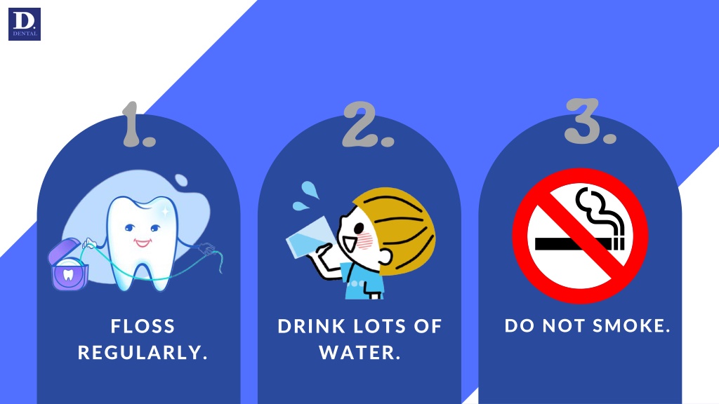 3. 1. 2. FLOSS DRINK LOTS OF WATER. DO NOT SMOKE. REGULARLY.