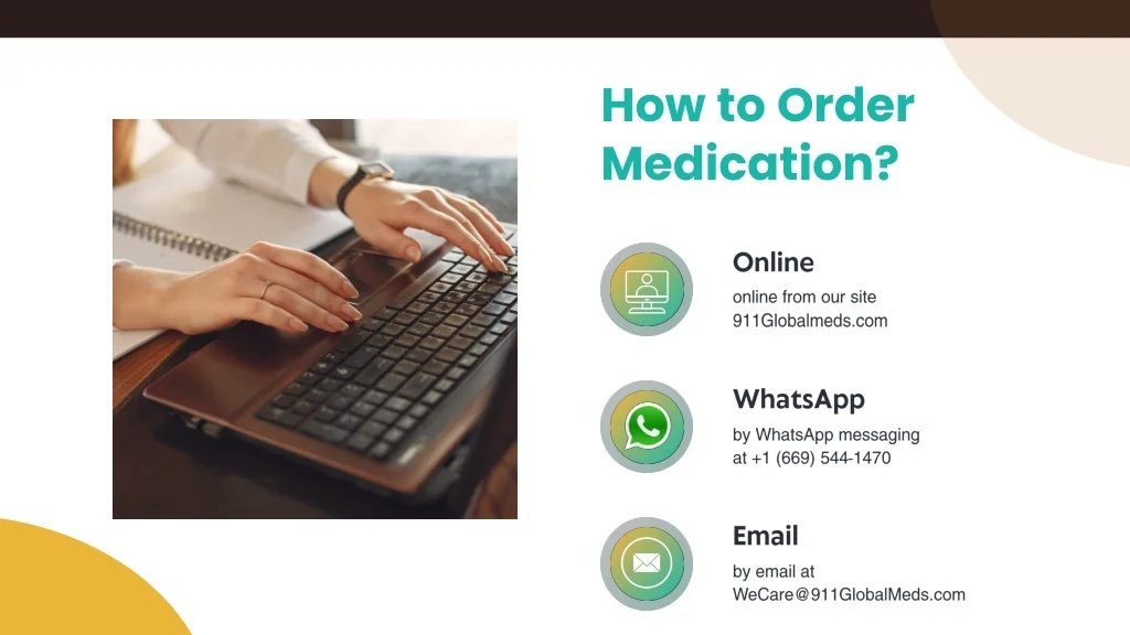 Online • WhatsApp • Email • online from our site 911Globalmeds.com • by WhatsApp messaging at +1 (669) 544-1470 • by email at WeCare@911GlobalMeds.com • How to Order Medication?
