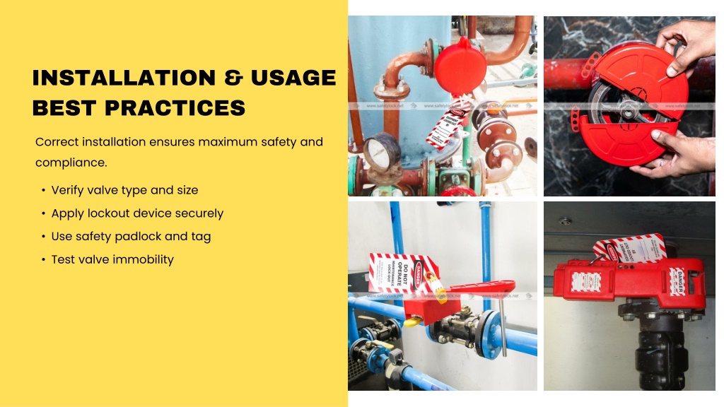 INSTALLATION & USAGE BEST PRACTICES Correct installation ensures maximum safety and compliance. • Verify valve type and size • Apply lockout device securely • Use safety padlock and tag • Test valve immobility