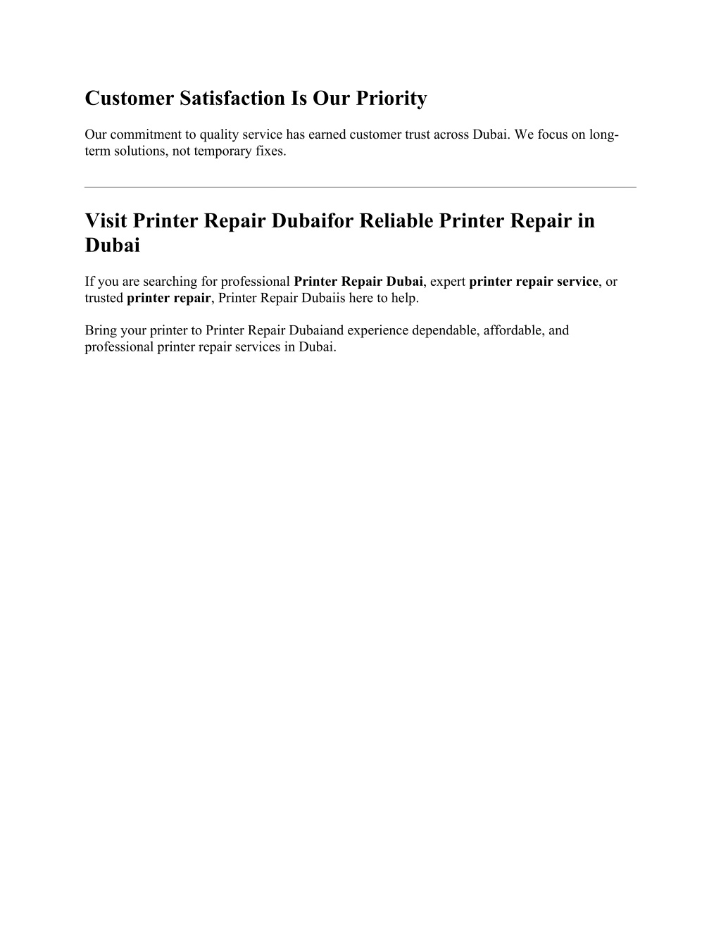 Customer Satisfaction Is Our Priority Our commitment to quality service has earned customer trust across Dubai. We focus on long- term solutions, not temporary fixes. Visit Printer Repair Dubaifor Reliable Printer Repair in Dubai If you are searching for professional Printer Repair Dubai, expert printer repair service, or trusted printer repair, Printer Repair Dubaiis here to help. Bring your printer to Printer Repair Dubaiand experience dependable, affordable, and professional printer repair services in Dubai.