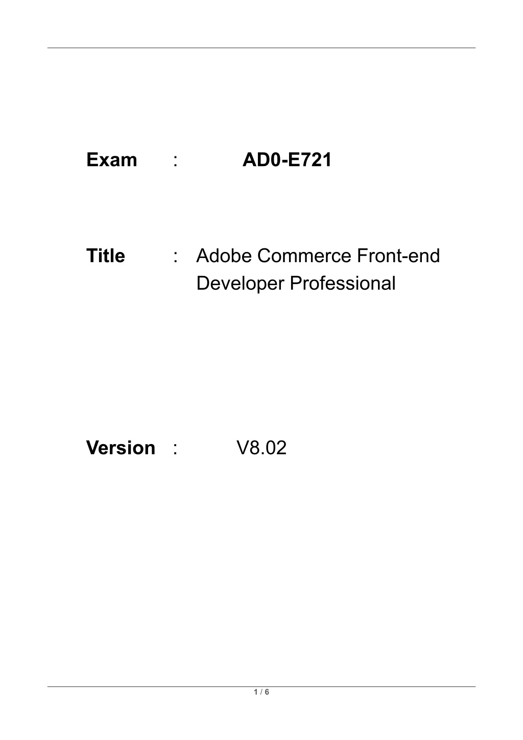 Exam : AD0-E721 Title : Adobe Commerce Front-end Developer Professional Version : V8.02 1 / 6