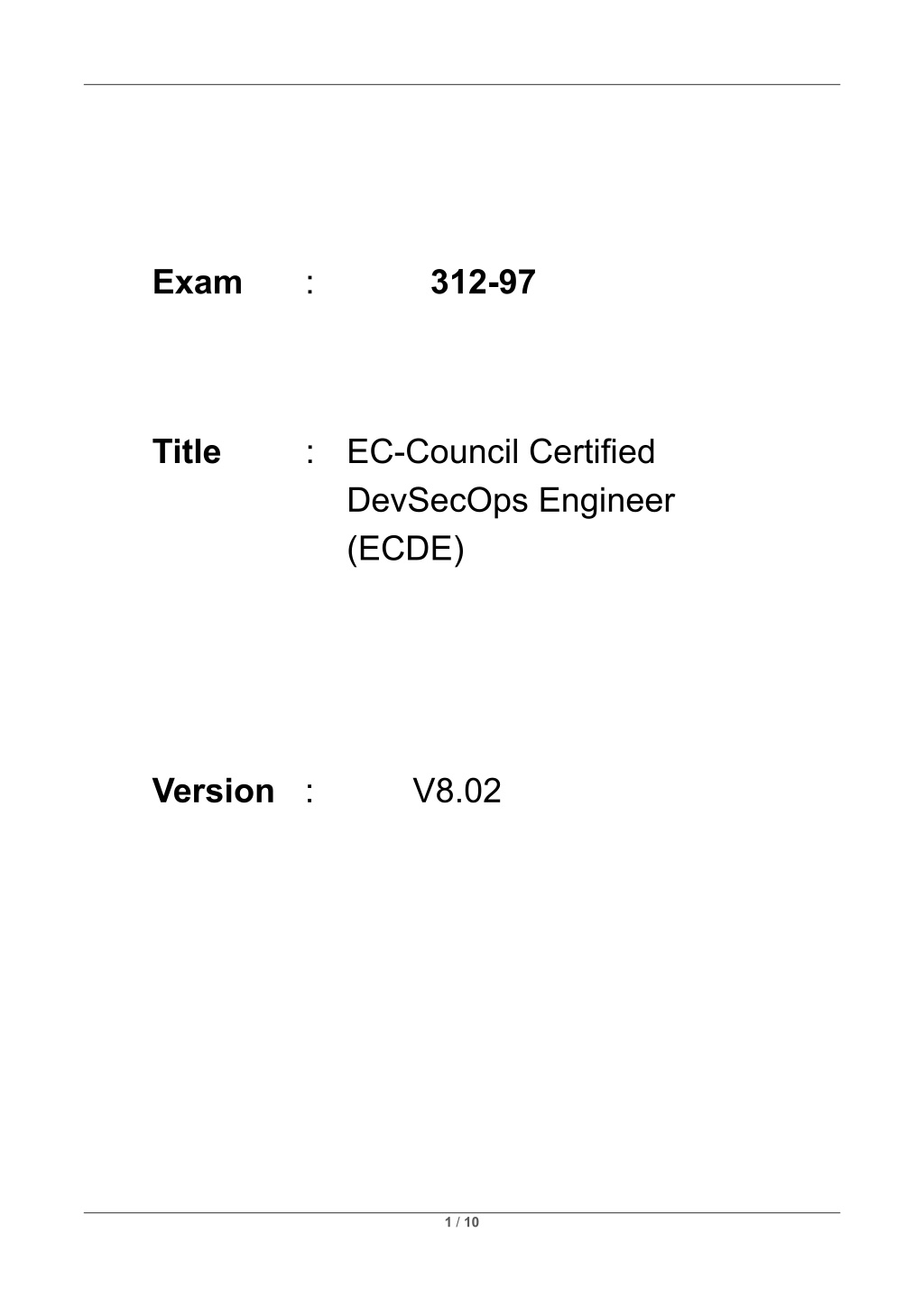 Exam : 312-97 Title : EC-Council Certified DevSecOps Engineer (ECDE) Version : V8.02 1 / 10