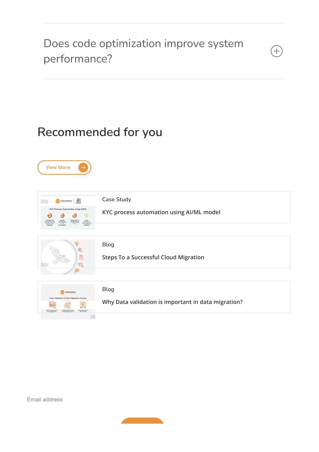 Does code optimization improve system performance? Recommended for you View More Case Study KYC process automation using AI/ML model Blog Steps To a Successful Cloud Migration Blog Why Data validation is important in data migration? subscribe to our blog Email address