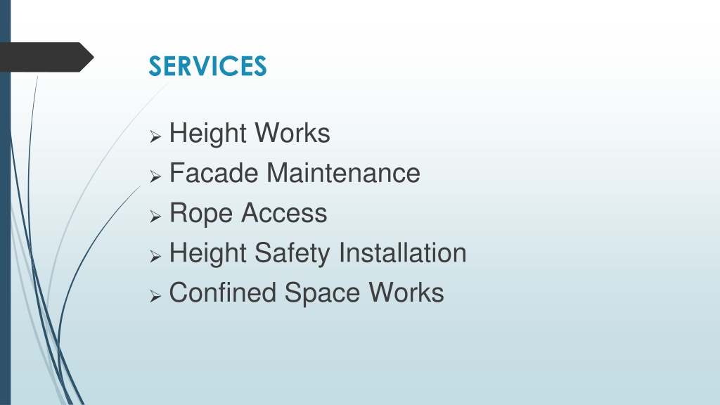 SERVICES • Height Works • Facade Maintenance • Rope Access • Height Safety Installation • Confined Space Works
