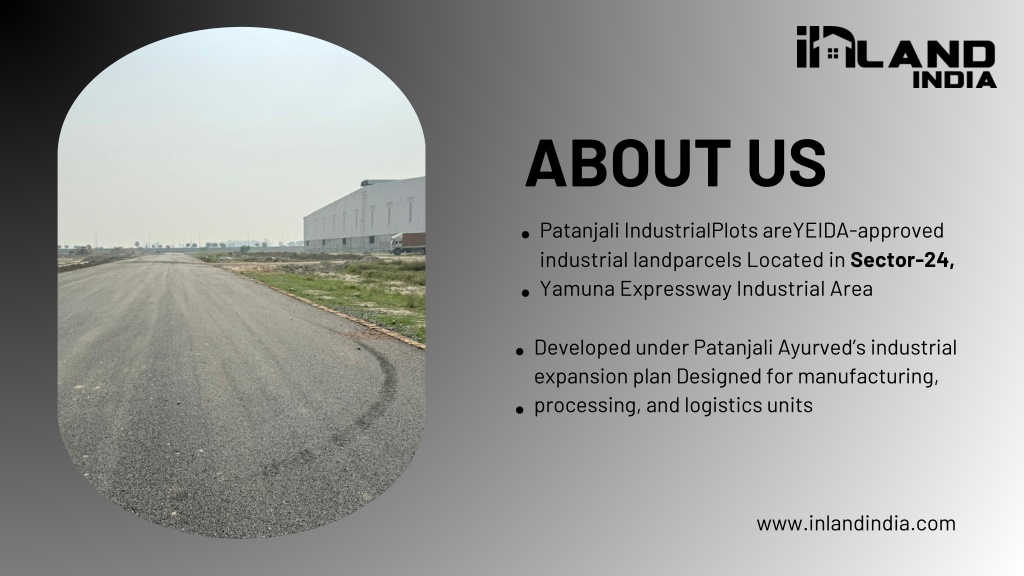 2. ABOUT US Patanjali IndustrialPlots areYEIDA-approved industrial landparcels Located in Sector-24, Yamuna Expressway Industrial Area Developed under Patanjali Ayurved’s industrial expansion plan Designed for manufacturing, processing, and logistics units www.inlandindia.com
