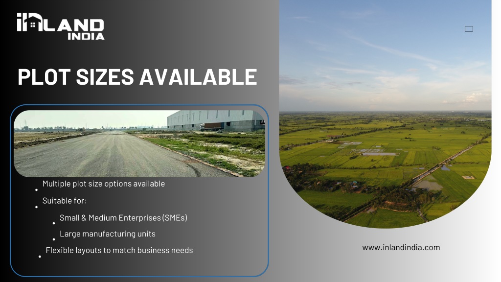 6. PLOT SIZES AVAILABLE Multiple plot size options available Suitable for: Small & Medium Enterprises (SMEs) Large manufacturing units www.inlandindia.com Flexible layouts to match business needs