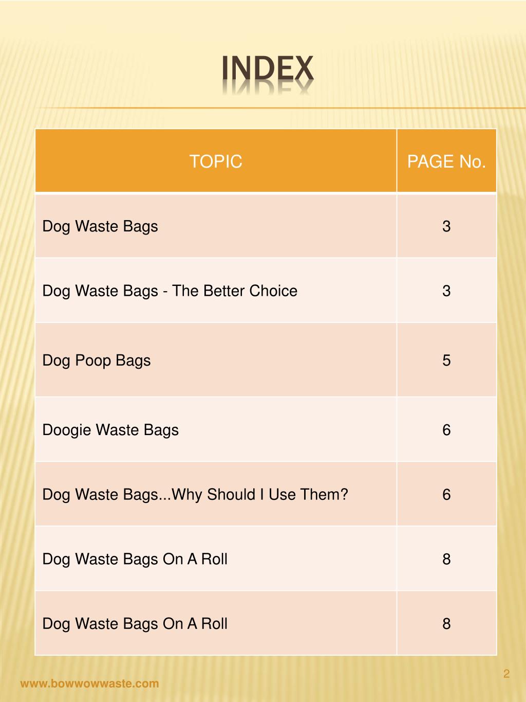 INDEX www.bowwowwaste.com