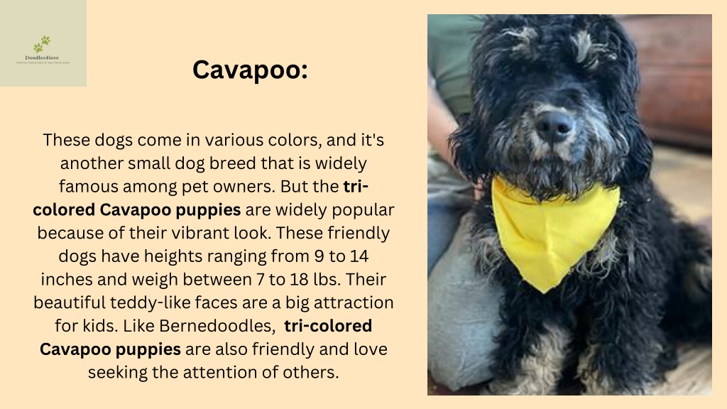 Looking for the best cavapoo puppies online? We offer tri-colored cavapoo puppies, which are a mix of Cavalier King Charles Spaniels and Poodles. They are intelligent and easy to train, making them suitable for first-time dog owners or those with busy lifestyles. To know more about the puppies, visit the website.<br><br>https://www.doodles4love.com/available-puppies
