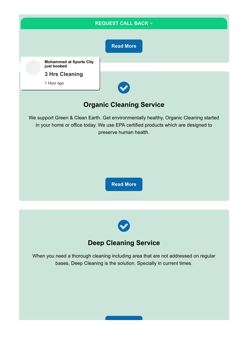 REQUEST CALL BACK Read More Alev at Victory Heights just booked Weekly Cleaning 4 Hrs Cleaning Steam Cleaning Deep Cleaning Weekly Cleaning Steam Cleaning Weekly Cleaning Baby Sitting 4 Hrs Cleaning Move In Cleaning 2 Hrs Cleanig Ironing Service 4 Hrs Cleaning 6 Hrs Cleaning Deep Cleaning Weekly Cleaning Weekly Cleaning Steam Cleaning Eco Cleaning 6 Hrs Cleaning Office Cleaning Office Cleaning 4 Hrs Cleaning 3 Hrs Cleaning 6 Hrs Cleaning Weekly Cleaning 3 Hrs Cleaning Ameer at Palm Jumeirah just booked booked booked booked booked booked just booked booked just booked John at JLT just booked just booked booked Estate just booked booked booked booked Residence just booked booked just booked just booked booked Community just booked booked just booked Estate just booked just booked Maria at Dubai Marina just Sally at Serena just Andrew at Dubai Hills just Alice at City Walk just Ilham at Downtowm just Karim at Arabian Ranches Lee at Dubai Marina just Sharon at Damac Hills Anthony at Business Bay Merve at Casa just Elanur at Jumeirah Golf Sana at Dubai Hills just Rajiv at Mira 2 just Alex at Greens just Anatasia at Polo Christina at Meadows just Zeynep at Victory Heights David at Business Bay Elizabeth at JLT just Fatima at Green Kim at Sports City just Zeynab at Barsha South Zümra at Jumeirah Golf Mohammed at Sports City 15 Minutes ago 30 Minutes ago 1 Hour ago 45 Minutes ago 2 Hour ago 6 Minutes ago 1 Hour ago 45 Minutes ago 3 Hour ago 1 Hour ago 30 Minutes ago 5 Hour ago 3 Hour ago 5 Minutes ago 20 Minutes ago 1 Hour ago 45 Minutes ago 5 Minutes ago 15 Minutes ago 6 Minutes ago 30 Minutes ago 15 Minutes ago 1 Hour ago 45 Minutes ago 3 Hour ago 15 Minutes ago 1 Hour ago Organic Cleaning Service We support Green & Clean Earth. Get environmentally healthy, Organic Cleaning started in your home or office today. We use EPA certified products which are designed to preserve human health. Read More Deep Cleaning Service When you need a thorough cleaning including area that are not addressed on regular bases, Deep Cleaning is the solution. Specially in current times.