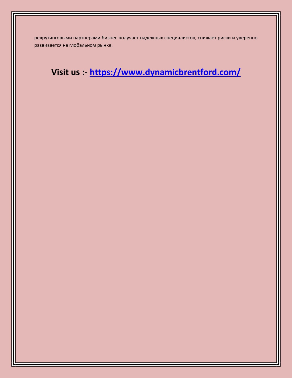 рекрутинговыми партнерами бизнес получает надежных специалистов, снижает риски и уверенно развивается на глобальном рынке. Visit us :- https://www.dynamicbrentford.com/