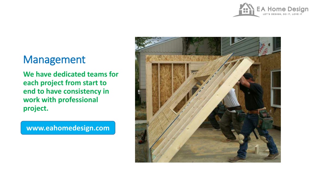Management We have dedicated teams for each project from start to end to have consistency in work with professional project. www.eahomedesign.com