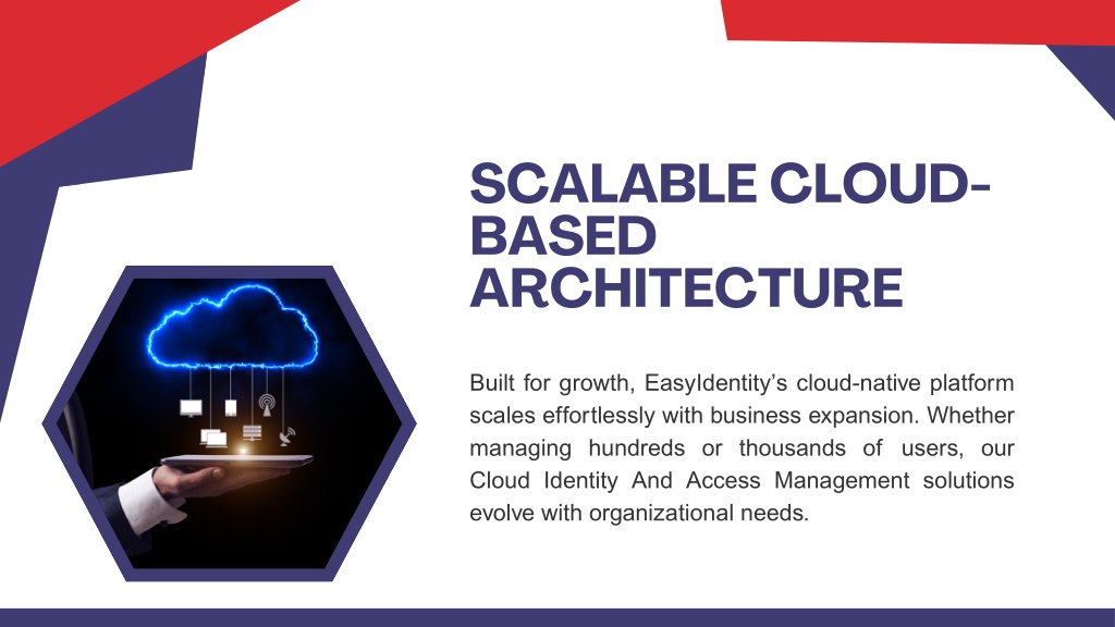 7. SCALABLE CLOUD- BASED ARCHITECTURE Built for growth, EasyIdentity’s cloud-native platform scales effortlessly with business expansion. Whether managing hundreds or thousands of users, our Cloud Identity And Access Management solutions evolve with organizational needs.