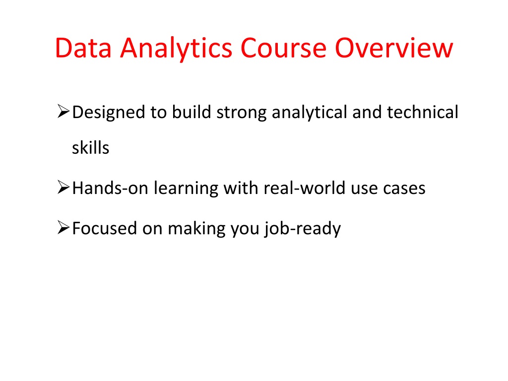 3. Data Analytics Course Overview • Designed to build strong analytical and technical skills • Hands-on learning with real-world use cases • Focused on making you job-ready