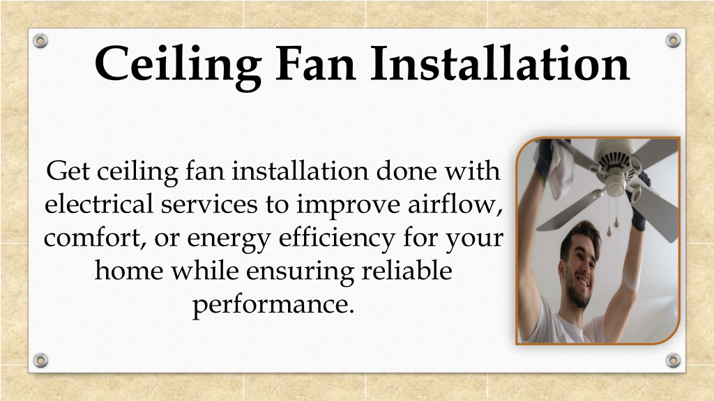 Ceiling Fan Installation Getceiling fan installationdone with electrical services to improve airflow, comfort, or energy efficiency for your home while ensuring reliable performance.