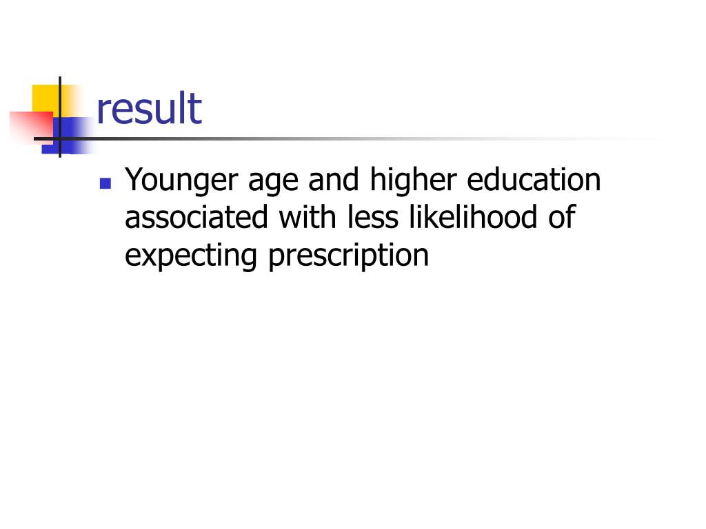 result • Younger age and higher education associated with less likelihood of expecting prescription