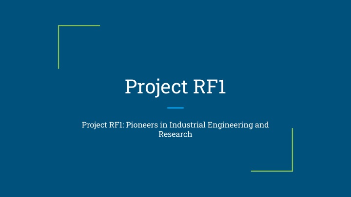 Project RF1 presents a comprehensive overview of industrial engineering innovation, research-driven strategy, and advanced technical development. The presentation highlights key initiatives including Duncan Clark Project RF1, Matthew Stone Project RF1, and Renovare RF1, showcasing scalable engineering solutions and forward-thinking design approaches. Focused on modern industrial progress, this PPT reflects a commitment to innovation, efficiency, and long-term technological advancement within evolving engineering environments.