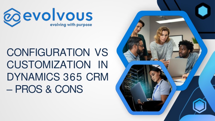 Choosingbetweenconfiguration(low/no‑code)and customization(code‑based)whenimplementing Dynamics365CRMimpactsdeployment speed, cost, upgraderesilience,flexibility,andlong‑term maintenance. Definition:Configuration: Definition:Customization: Loremipsumdolorsitamet,consectetur adipiscingelit.Nullamquisaugueneque. Nunccondimentumexinpulvinar accumsan.Fuscemalesuadarisus ullamcorperturpissollicitudiniaculis. Tailoringtheplatformusingbuilt‐in tools,nocodechanges.Adminsor businessfunctionalusersadjust entities,forms,views,workflows,and securityroles.