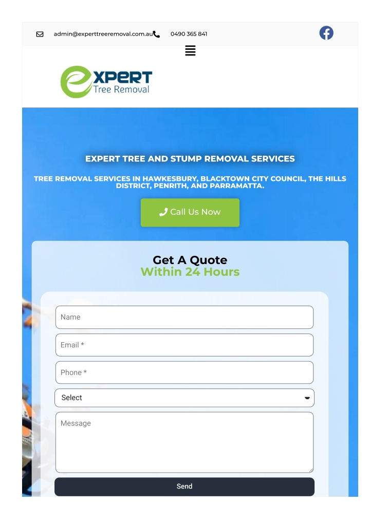 admin@experttreeremoval.com.au 0490 365 841 EXPERT TREE AND STUMP REMOVAL SERVICES EXPERT TREE AND STUMP REMOVAL SERVICES TREE REMOVAL SERVICES IN HAWKESBURY, BLACKTOWN CITY COUNCIL, THE HILLS DISTRICT, PENRITH, AND PARRAMATTA. Call Us Now Get A Quote Within 24 Hours Name Email * Phone * Select Message Send