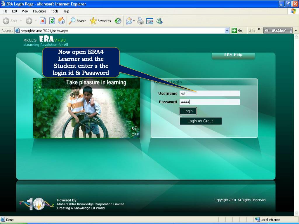 Now open ERA4 Learner and the Student enter s the login id & Password