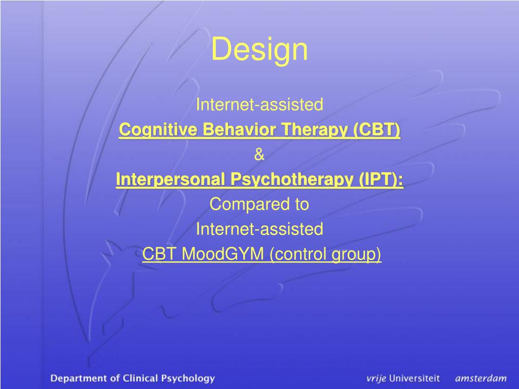 Design Internet-assisted Cognitive Behavior Therapy (CBT) & Interpersonal Psychotherapy (IPT): Compared to Internet-assisted CBT MoodGYM (control group)