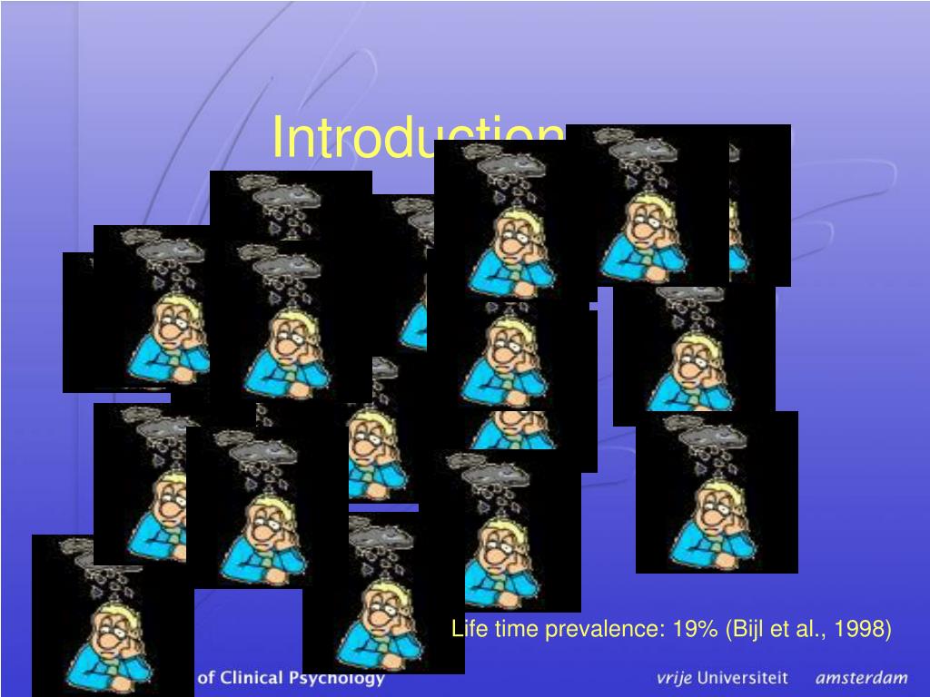 Introduction Life time prevalence: 19% (Bijl et al., 1998)