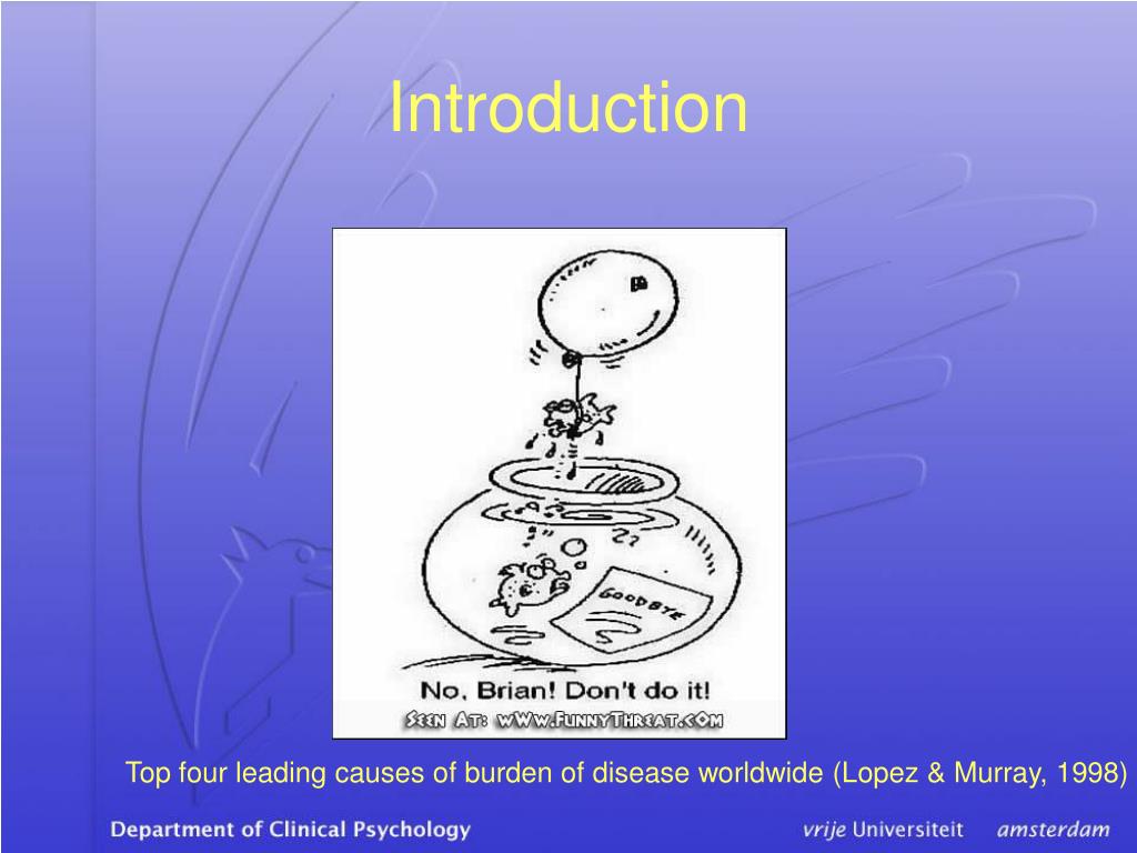 Introduction Top four leading causes of burden of disease worldwide (Lopez & Murray, 1998)