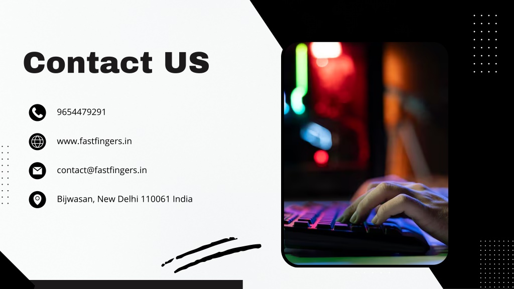 Contact US 9654479291 www.fastfingers.in contact@fastfingers.in Bijwasan, New Delhi 110061 India