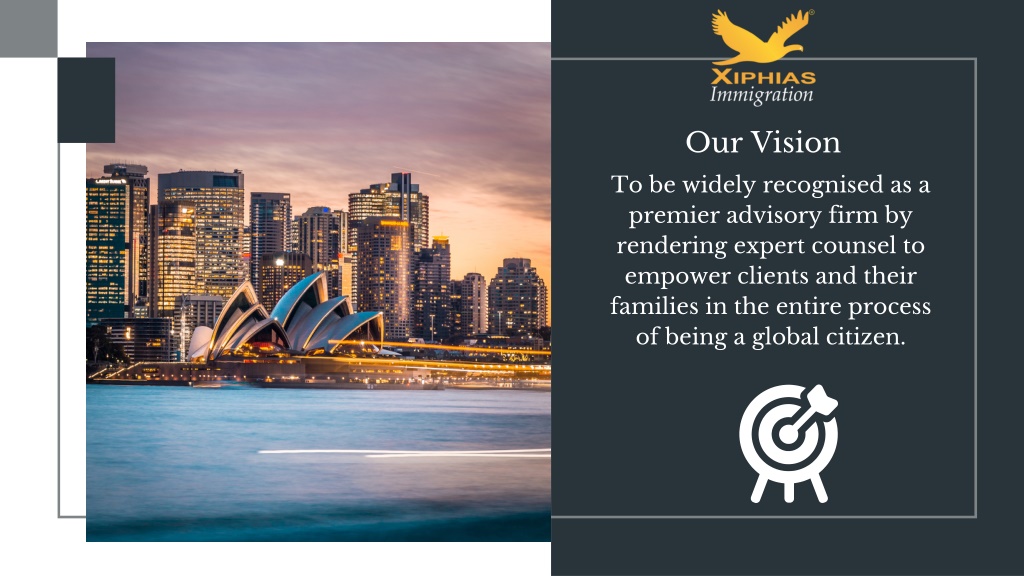 Our Vision To be widely recognised as a premier advisory firm by rendering expert counsel to empower clients and their families in the entire process of being a global citizen.
