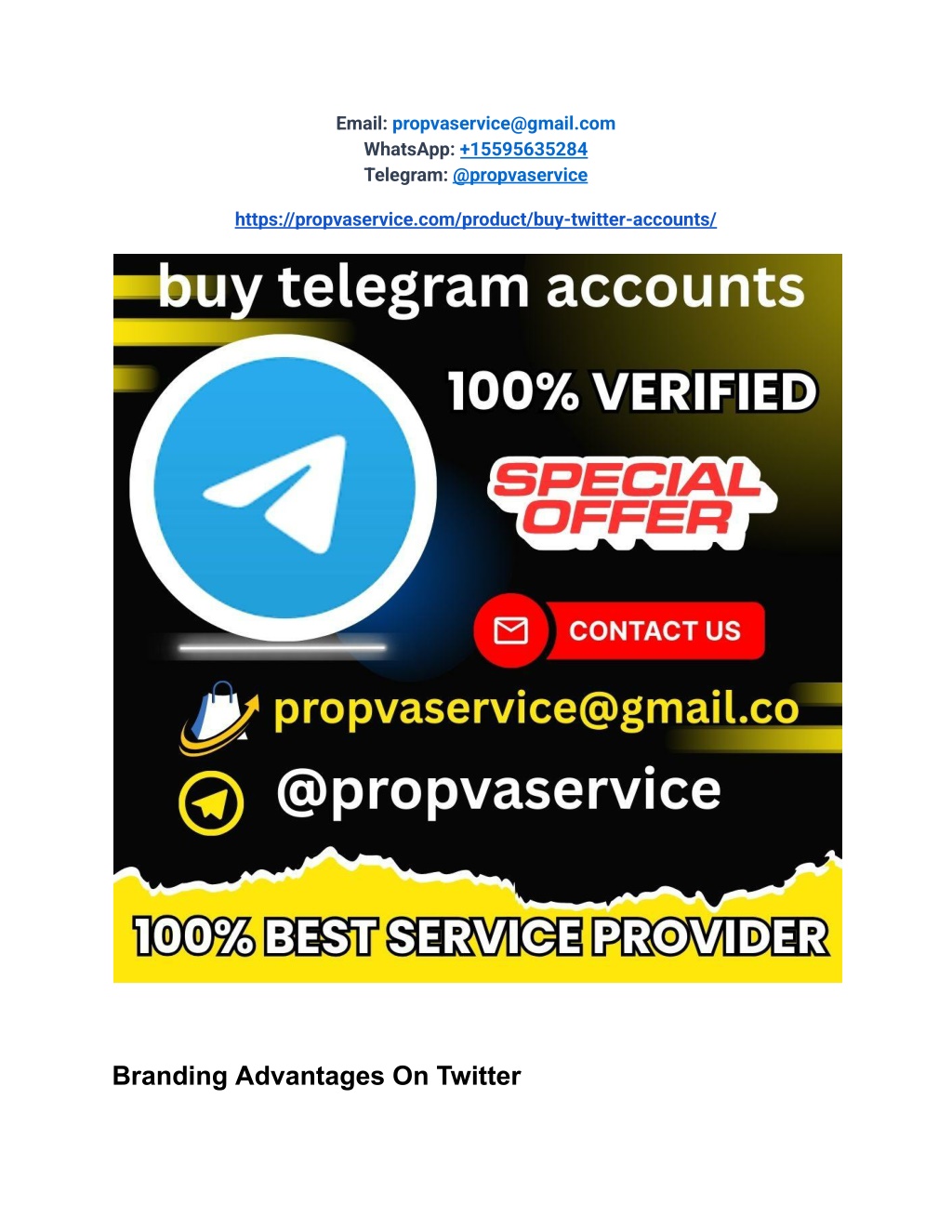 Email: propvaservice@gmail.com WhatsApp: +15595635284 Telegram: @propvaservice https://propvaservice.com/product/buy-twitter-accounts/ Branding Advantages On Twitter