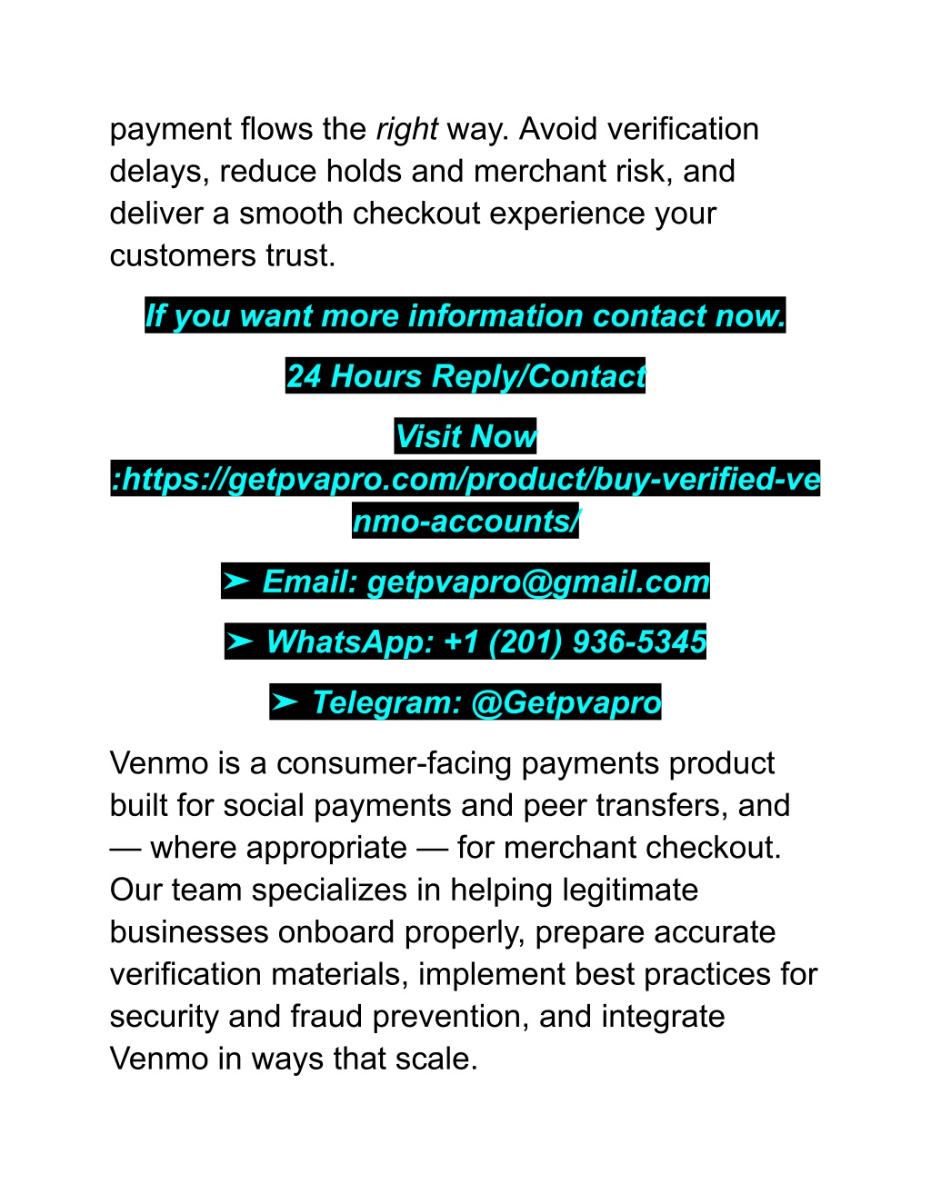 payment flows the right way. Avoid verification delays, reduce holds and merchant risk, and deliver a smooth checkout experience your customers trust. If you want more information contact now. 24 Hours Reply/Contact Visit Now :https://getpvapro.com/product/buy-verified-ve nmo-accounts/ ➤ Email: getpvapro@gmail.com ➤ WhatsApp: +1 (201) 936-5345 ➤ Telegram: @Getpvapro Venmo is a consumer-facing payments product built for social payments and peer transfers, and — where appropriate — for merchant checkout. Our team specializes in helping legitimate businesses onboard properly, prepare accurate verification materials, implement best practices for security and fraud prevention, and integrate Venmo in ways that scale.