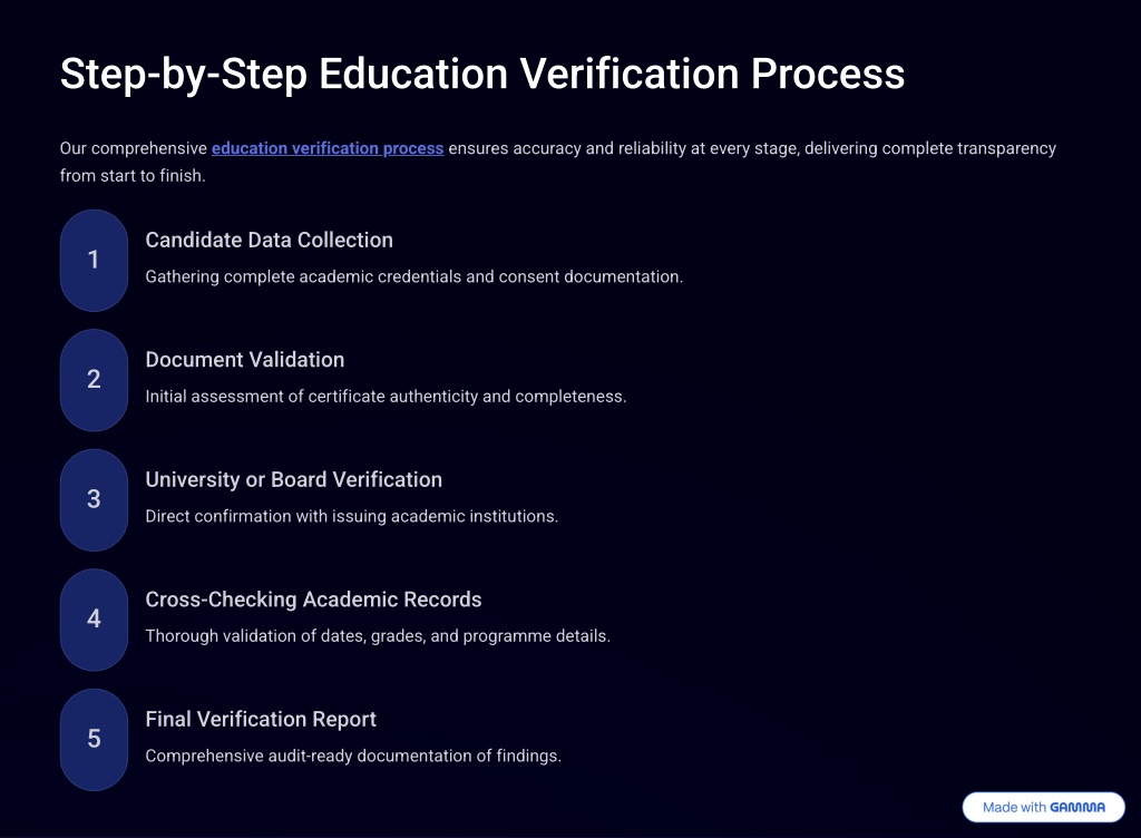 An overview of education verification services, covering academic verification processes, common challenges, and the role of reliable verification systems in modern hiring practices.